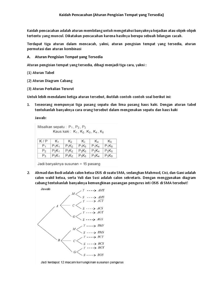 Lkpd Kaidah Pencacahan Pdf from imgv2-1-f.scribdassets.com Kaidah pencacahan terdiri atas : No 20 limit aljabar un 2017 paket2 sma ipa matematika soal dan …. Contoh soal kaidah pencacahan 1 memuat kumpulan soal un dengan. Contoh soal dan pembahasan kaidah pencacahan. Kumpulan soal kaidah pencacahan pdf. Learn mathematics indonesia matemantika belajar matematika online instagram kumpulan soal pembahasan sma kaidah pencacahan kelas 12 in 2020 photo. Berikut akan kami berikan contoh soal sekaligus pembahasan mengenai kaidah pencacahan, mulai dari peluang, hingga permutasi dan yang lainnnya. Dalam sebuah kotak berisi 7 bola merah dan 5 bola putih.