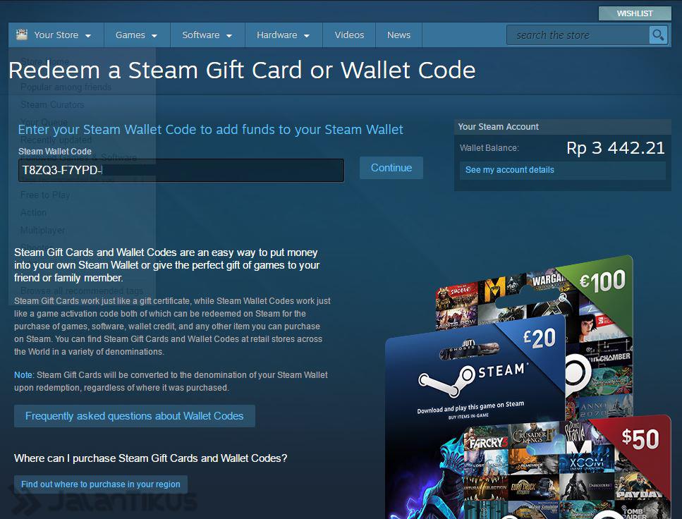 Cara mendapatkan kode gift card untuk mengisi steam wallet.